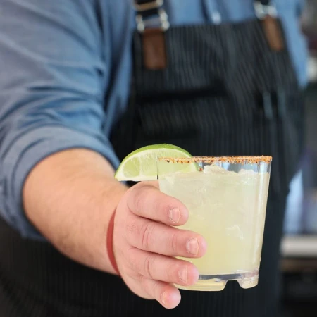 Astral Añejo tequila, Magdala orange liqueur, fresh lime juice, Serrano-infused agave nectar, Tajín rim, serrano slice