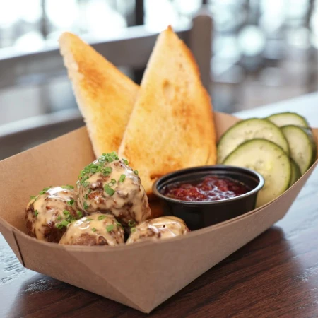 Slow cooked in a smoked gouda gravy and served with sourdough, quick pickles and lingonberry jam
